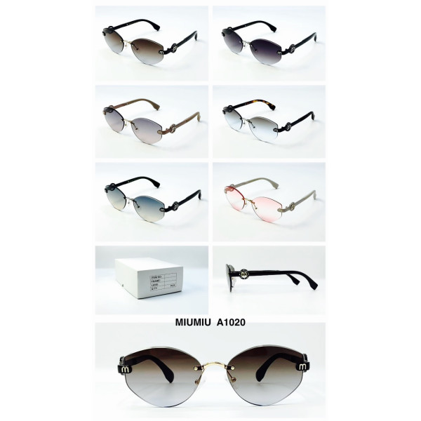 Сонцезахисні окуляри MIU MIU A1020, безрамкові багатокутні, декор логотипом, асорті кольорів, опт