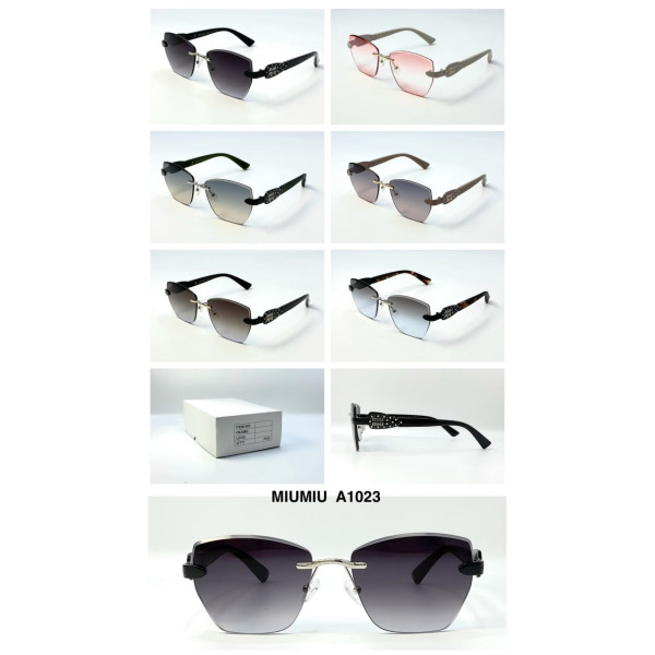 Сонцезахисні окуляри MIU MIU A1023, безрамкові, декор камінням, асорті кольорів, опт
