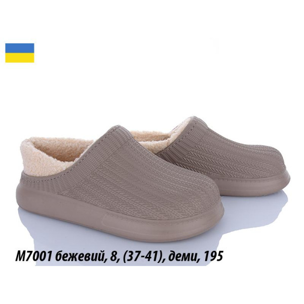 Тапки демісезонні M7001, бежеві, з утепленим хутром усередині. Розміри: 37–41. Зручні та теплі для дому чи вулиці. Оптом на сайті opt7km.net.ua