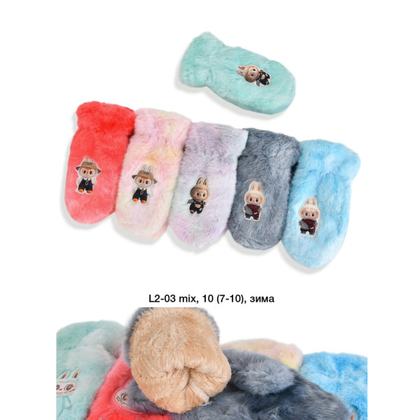 Купити дитячі рукавички LABUBU оптом на вік 7-10 років. Хутряна підкладка, м'яка в'язка, найпопулярніший дизайн сезону. Упаковка 12 пар. Код: L-2. Замовляйте на OPT7KM!