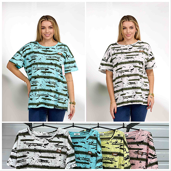 Жіноча футболка «Fashion Супер Батал» з абстрактним малюнком, універсальний розмір 58-62, мікс кольорів, 10 шт. в упаковці