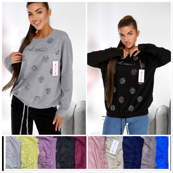 Жіноча кашемірова кофта (светр) Батал Універсал 50–54. Декор точкованими кругами зі стразів/паєток. На зав'язці. Мікс кольорів. ОПТ: пачка 10 шт. Opt7km.