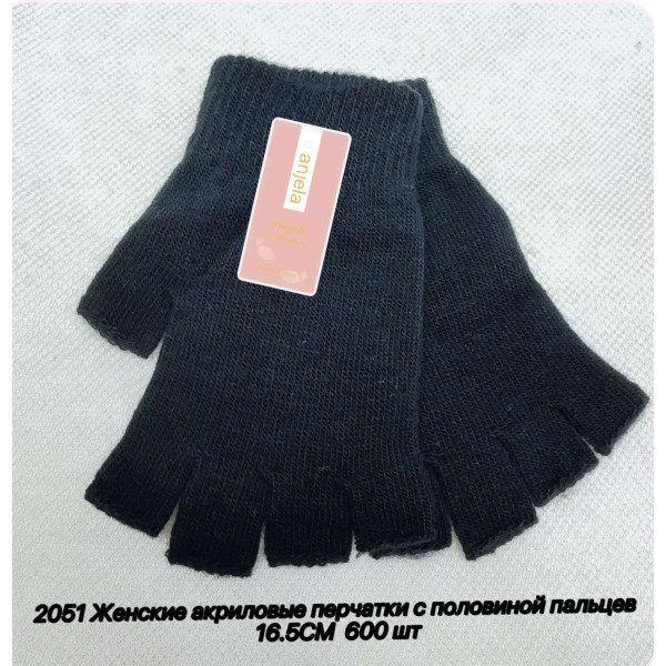 Жіночі акрилові мітенки чорні (2051). Рукавички без пальців.