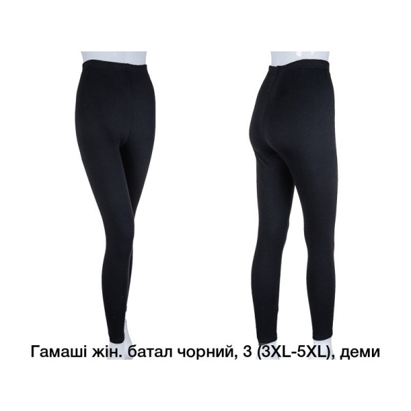 Жіночі гамаші батальних розмірів з бавовни з начосом усередині. Добре тягнуться, м’які та теплі, ідеально підходять для прохолодної погоди. Зручна посадка та еластичний пояс забезпечують комфорт у носінні. Розміри: 3XL, 4XL, 5XL. В упаковці — 3 штуки.