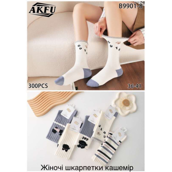 Жіночі кашемірові шкарпетки AKFU B9901-8. Теплі та м’які. Розмір: 36–41. Упаковка — 300 шт.