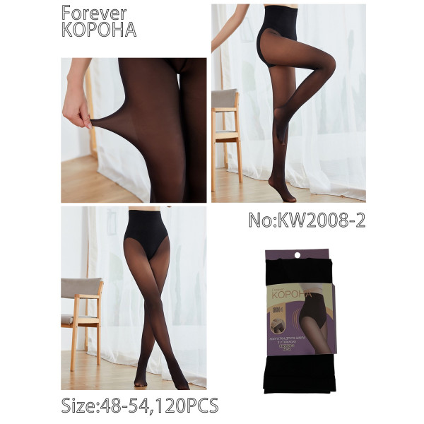 Жіночі колготки Forever Korona моделі KW2008-2 — це комфорт і елегантність в одному виробі. Вони створюють ефект другої шкіри, щільно прилягаючи до ніг. Мають утягуючий верх, який моделює силует, забезпечуючи комфорт у повсякденному носінні. Виготовлені з міцної еластичної тканини, стійкої до розтягування. Розмір: 48–54. Упаковка: 120 штук.