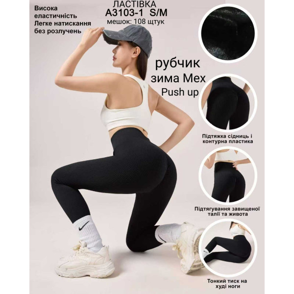 Жіночі лосини Ластівка . Рубчик, зима, на хутрі. Розмір S/M. Ефект Push-up.