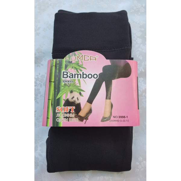 Жіночі теплі лосини (бренд OMCA, артикул 9998-1), ідеальні для зимового сезону. Модель має високу щільність 8800D та утеплена м'яким хутром (густим ворсом) зсередини, забезпечуючи максимальний тепловий комфорт. Виготовлені з еластичного матеріалу Bamboo Soft. Лосини мають один задній шов (зручно для менших розмірів), високу посадку та широкий пояс. Розмір: 44-46 (Норма). Колір: класичний чорний. ОПТ: пачка 12 штук одного розміру.