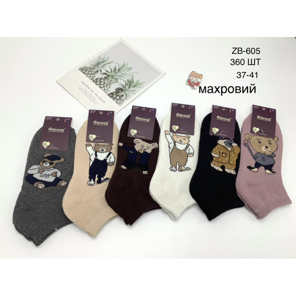 Жіночі махрові носки Фенна ZB-605 з ведмедиками. Розмір 37–41. Теплі, м’які та зручні. Упаковка — 360 шт.