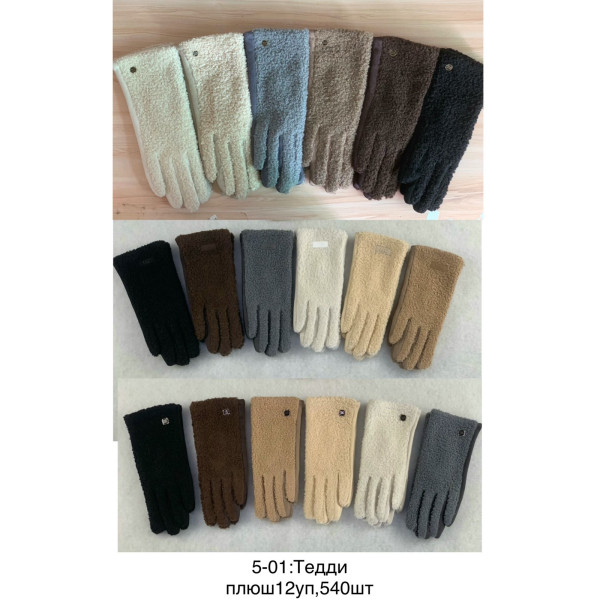 Жіночі рукавички (Артикул 5-01) – трендова модель, виготовлена з якісного м'якого плюшу з ефектом "Тедді". Цей матеріал добре зберігає тепло і є гіпоалергенним. Рукавички класичного крою (з пальцями), зручно сидять на руці. Широкий асортимент складається з 12 ходових кольорів (мікс), що дозволяє легко поєднувати їх з будь-яким зимовим одягом. Ідеальний вибір для ОПТОВОЇ торгівлі. Мінімальна партія: 12 шт. в упаковці, великий ОПТ — 540 шт. у ящику.