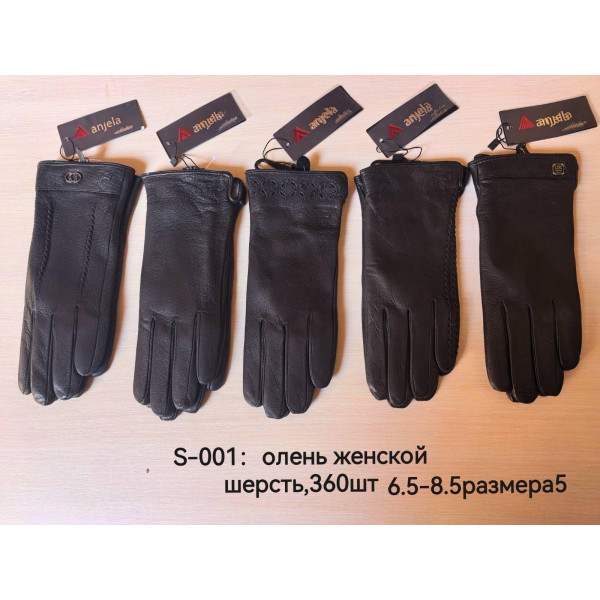 Жіночі шкіряні рукавички S-001 (Олень). Підкладка шерсть. Розміри 6.5-8.5. ОПТОМ.