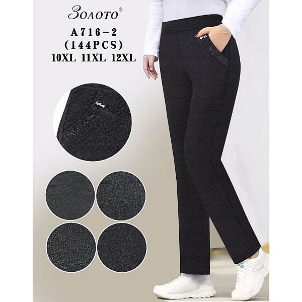 Жіночі штани Золото (А713/А715/А716), батал весна, розміри 8XL-12XL, чорні, ростовка 6 шт., опт