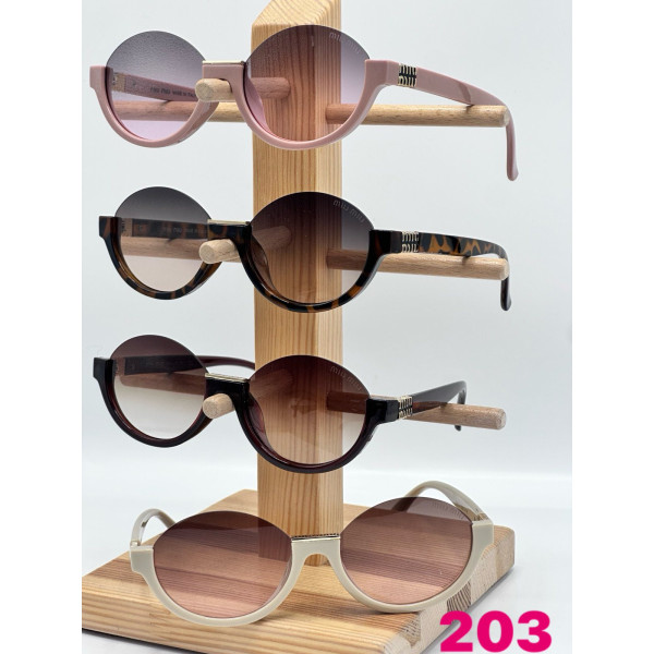 Сонцезахисні окуляри моделі 203 — це ідеальне поєднання ретро-стилю та футуристичного дизайну. Кругла форма лінз із відкритим верхнім краєм додає образу легкості та витонченості. Дужки прикрашені елегантним рельєфним декором золотистого кольору, що підкреслює преміальну естетику аксесуара. Лінзи з м'яким градієнтом надійно захищають очі від ультрафіолетового випромінювання (UV400) та забезпечують комфортну видимість за будь-якого освітлення.