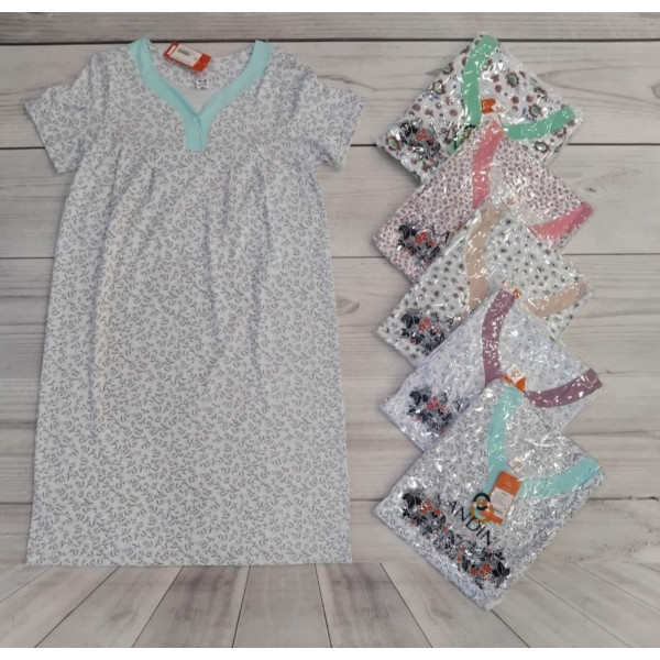 Жіночі сорочки Andin, розміри 48–56. М’яка бавовна, зручний фасон із ґудзиками, короткий рукав. Виробництво — Узбекистан. В упаковці 5 штук, мікс кольорів. Опт.