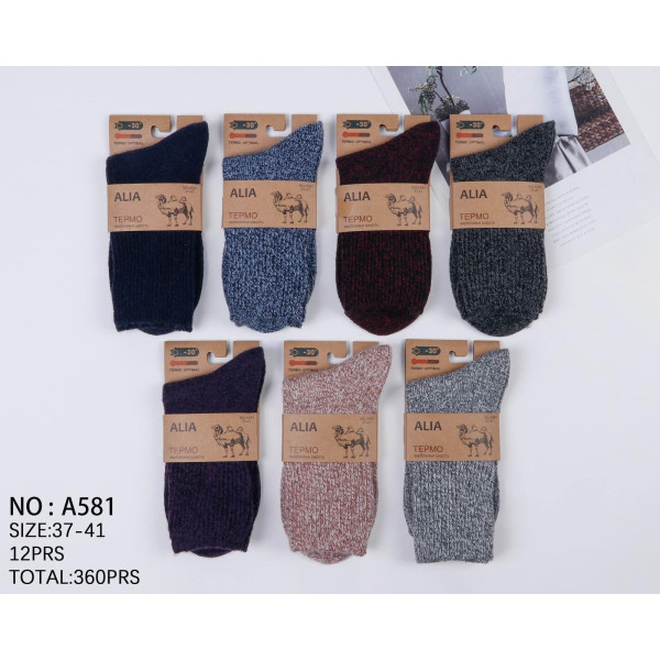 Жіночі термо-шкарпетки ALIA з верблюжої шерсті. Дуже теплі та м’які. Розмір 37–41. Упаковка — 12 пар.