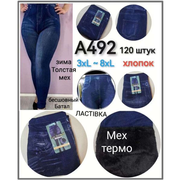Ластівка A492 — це зимові жіночі батальні джегінси з високою посадкою. Виконані з м’якого хлопку з додаванням еластану, утеплені густим хутром, що добре зберігає тепло. Безшовна технологія робить їх комфортними у носінні та візуально стрункими. Розміри від 3XL до 8XL дозволяють підібрати модель для різних типів фігури. Ідеальний варіант для зими — теплі, стильні та зручні. Упаковка — 120 шт.