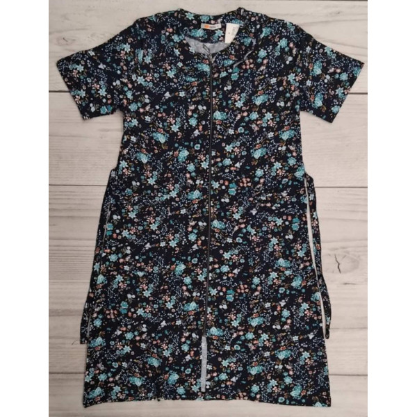 Жіночий халат Samo 3337 на блискавці, розміри 48-56. Квітковий принт на темному фоні, короткий рукав, бокові кишені, пояс. Зручний та практичний для дому. В упаковці 1 колір. Опт.