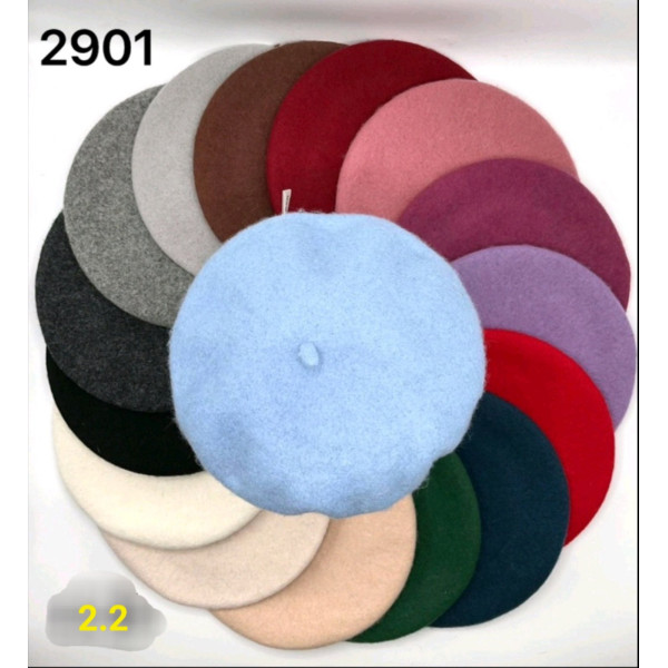Класичний жіночий берет артикул 2901 виконаний із вовняного матеріалу. Завдяки щільній текстурі добре тримає форму, захищає від холоду та дарує комфорт у холодну пору року. Представлений у широкій палітрі кольорів: від ніжних пастельних до яскравих та насичених відтінків. Ідеальний аксесуар для створення елегантного осінньо-зимового образу.