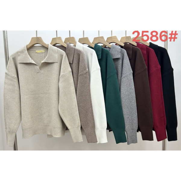 Жіночий светр 2586#, кашемір. Розмір 48–52. М’який, теплий, приємний до тіла. Стильний комір-поло, класичний крій. Асорті кольорів.